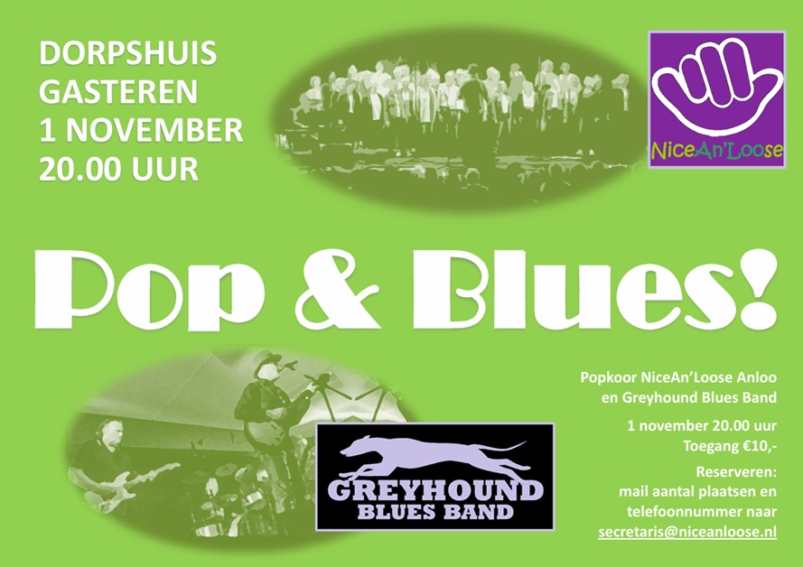 Op 1 november om 20.00 uur verzorgt popkoor Nice An’Loose opnieuw een optreden met deels nieuw repertoire en ook vertrouwde nummers in de Gasterije met begeleiding van de Greyhound Blues Band.