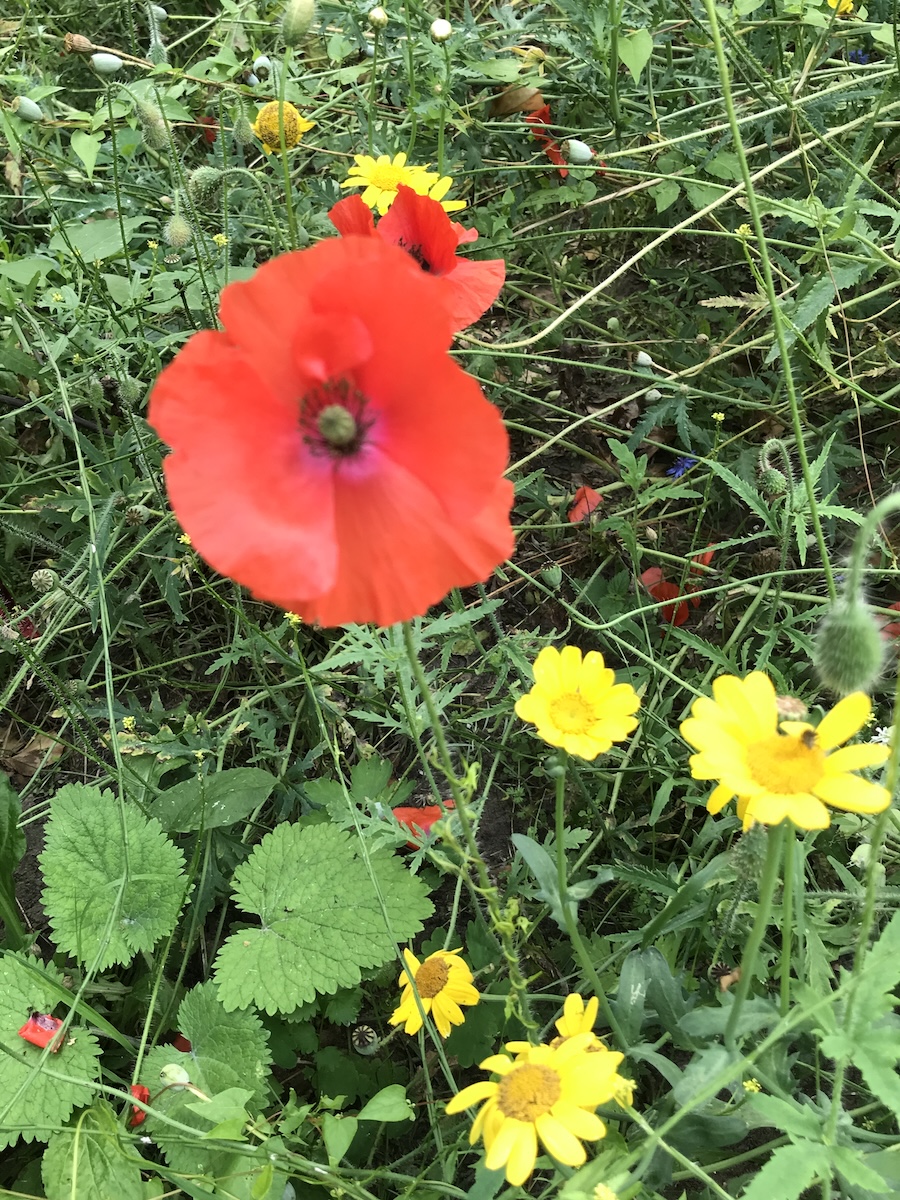 Bij de eerste maaibeurt eind september zagen we al mooie inheemse soorten verschijnen: aan de Gagels, tussen alle eenjarige bloemen: de kleine pimpernel, blaassilene en wondklavers; aan de Oudemolenseweg was de diversiteit in soorten nog veel groter, met onder andere het hazenpootje en de teunisbloem.