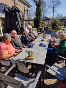 Na afloop dronken we gezellig koffie met elkaar in het zonnetje op het terras van het restaurant bij de Havezate. Het was weer een gedenkwaardige ochtend.