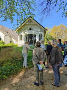 Na de koffie met koek vervolgden we onze wandeling. Greet vertelde vol liefde over de ontwikkelingen van het landgoed, prachtige bomen, struiken, bloeiende planten, verschillende soorten aangelegde percelen, alles zeer goed onderhouden. We hebben een geweldige ochtend gehad met elkaar. Zeer de moeite waard om dit landgoed te bezoeken.