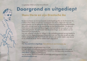 Er is onlangs een boek verschenen over Hans Elerie en zijn werk. Omdat hij veel geschreven heeft over het landschap van de Drentsche Aa, waarin Gasteren zo centraal gelegen is, leek het de redactie een goed idee dit boek bij u onder de aandacht te brengen. Hieronder is aangegeven hoe u het boek kunt bestellen.