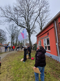 Om het logo te onthullen hebben de kinderen in groepjes gewerkt aan het oplossen van escaperoom opdrachten die te maken hadden met bijvoorbeeld rekenen of taal. Met elke juiste oplossing werd een deel van het logo verdiend. Nadat alle groepjes in school het logo hadden gelegd, werd buiten de vlag in top gehesen door de jongste en oudste leerlingen van de school.