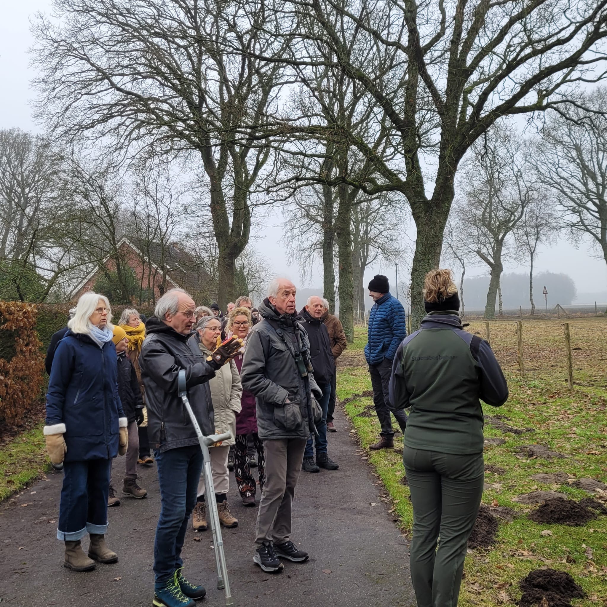 Na alle sneeuw en ijzel van de afgelopen dagen was het er qua weer een prima dagje voor: de jaarlijkse winterwandeling van de Rietvogels en de Kartrekkers. Dat was ook goed te merken aan de opkomst. Er liepen wel 40 tot 50 mensen mee, onder leiding van Henk van den Brink, gids van Nationaal Park Drentsche Aa en voormalig redacteur van hun magazine Doorstroom, en Jolijn Meier, boswachter publiek van Staatbosbeheer, sinds 1 november de opvolger van de ons wel bekende Kees van Son.